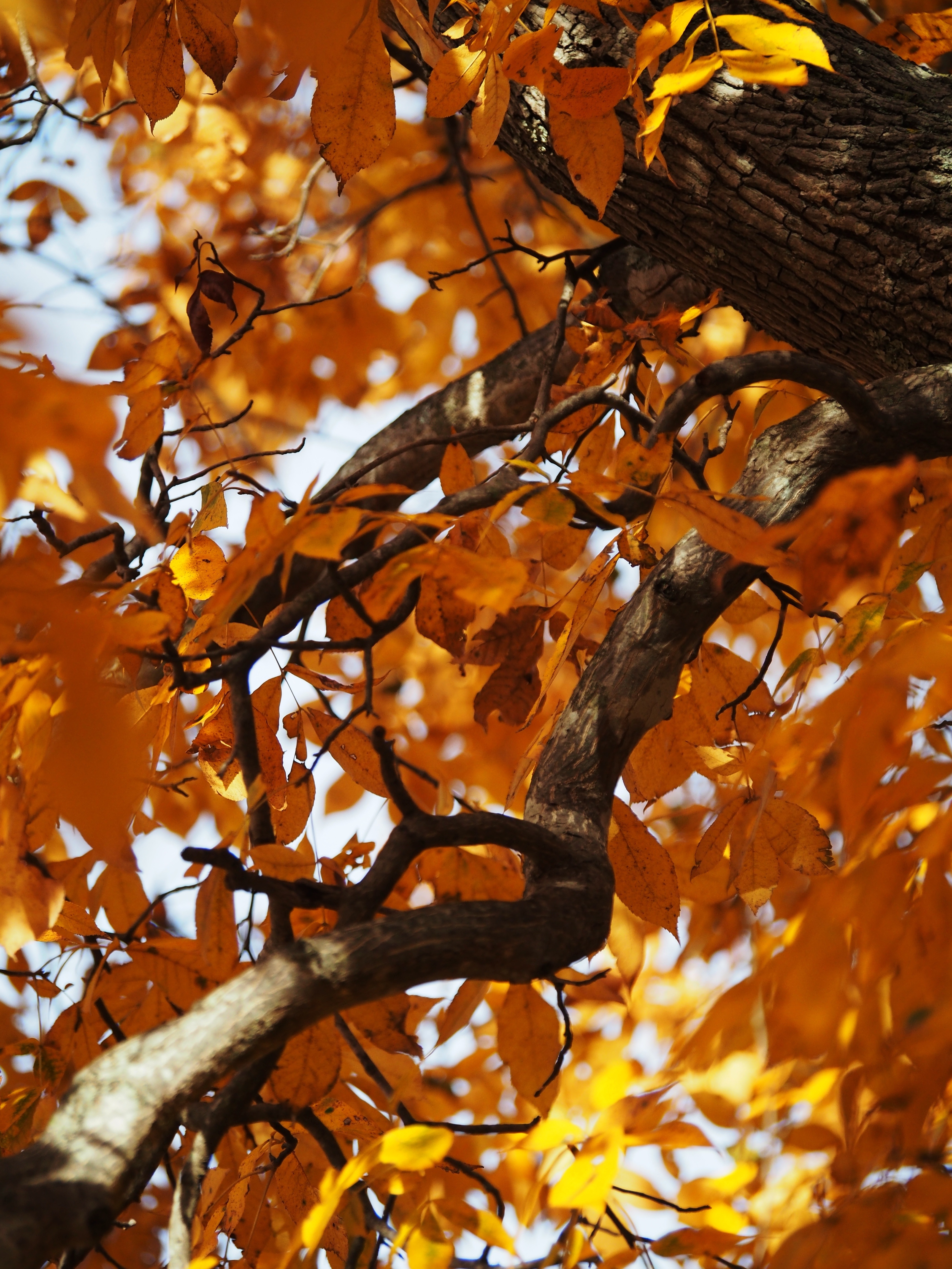 Some maples hung on in spite of the recent wind and rains, sometimes the sky was visible right through them.