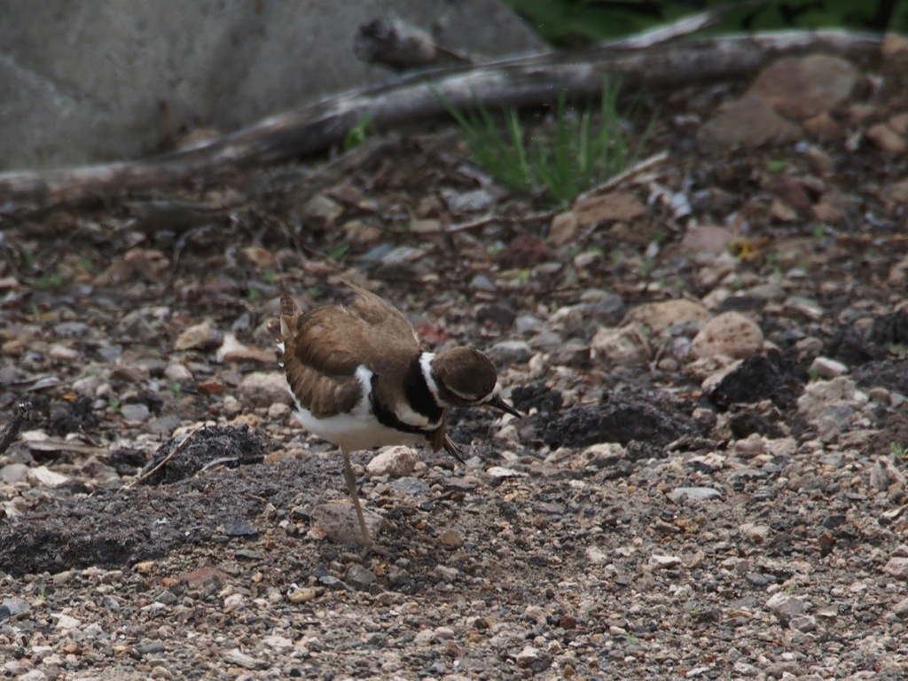 Such amazing camouflage – killdeer can blend into a pile of rocks or leaves or roadside gravel like this. The male actually walked away from the nest and stopped to lure me away. When I looked back the female put on this show to try to convince me her nest was a few feet from its actual location. I respected her show and never approached the real nest.