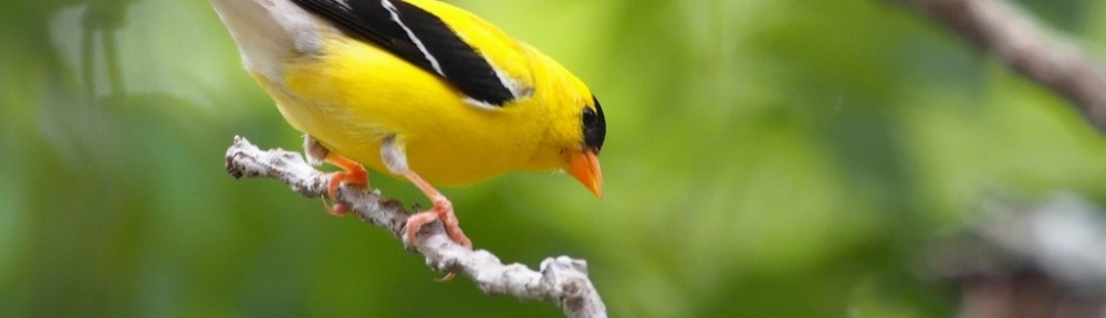 This male goldfinch was the first to return with his new yellow summer outfit. He is unflappable. Dogs barking and racing below his feeder don’t bother him. Yesterday a crow zipped by and almost carried him away – I watched in horror as the collision happened right in front of me. He did a tumble and landed on his feet on the porch – I saw some white down float upward. He took a perch a few feet off the ground and caught his breath. 10 minutes later he was back on his perch feeding. As I have said before, goldfinches are badasses.