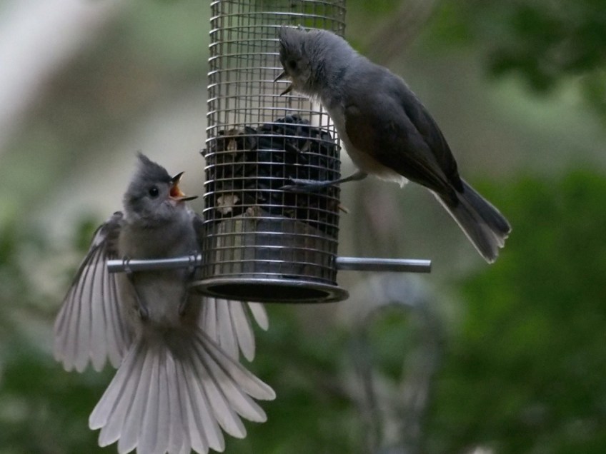 Now the youngster goes all out – pulling out all the stops. The mature bird lets out an unconcerned “chirp”.