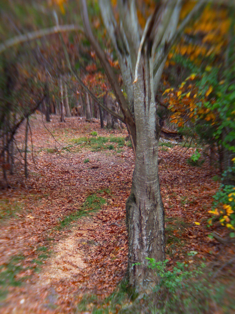 Logging Road Published November 7, 2013 at 768 × 1024 in Logging Road This is one of those spots where you see a road, but it’s hard to get the sense of space. The tilt-shift lens allowed me to focus on the tree in the foreground and that pushes the road back, giving it some depth.