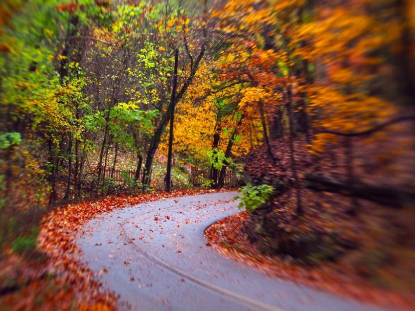 This shot was taken from the same driveway on Magnetic Road – but looking down the hill instead of up – here I focused on the leaves on the ground at the curve. The details beyond, like the fences give the image a deeper sense of space.