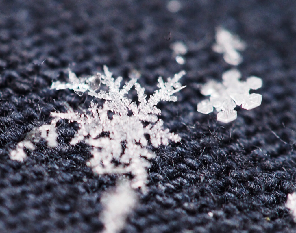f/2.8 1/80 second – Another longish exposure with the aperture wide open. I was hoping for more detail in the larger flake, the surprise was the one to the right. My classmates occasionally made paper snowflakes with this bulky shape and I made fun of them. I was wrong.