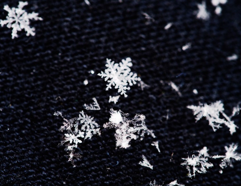 Lone Flakes Published February 2, 2014 at 1024 × 792 in Lone Flakes f/4 1/30 second – Here I tried a longer exposure on an area with very few flakes. I see a classic paper shape pretty clearly on the one in the center.