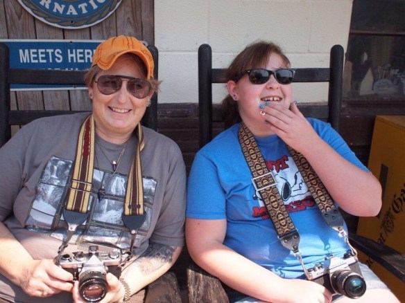 I am attempting to shoot a roll of film a month this year – I’m about a month behind, but I’m catching up. My niece, Laura, came for a visit at the end of June. She is an avid shutterbug and has been interested in learning to operate a film camera. She picked up a Pentax kit and brought it with her on her trip. Once we got the pieces out and looked them over I found that my mother’s Vivitar Cosina from the late 70s was also a Pentax mount. Score! I was able to add a doubler, a fast 50, and a telephoto to her kit. More importantly, I was able to hook her up with a very cool vintage strap…