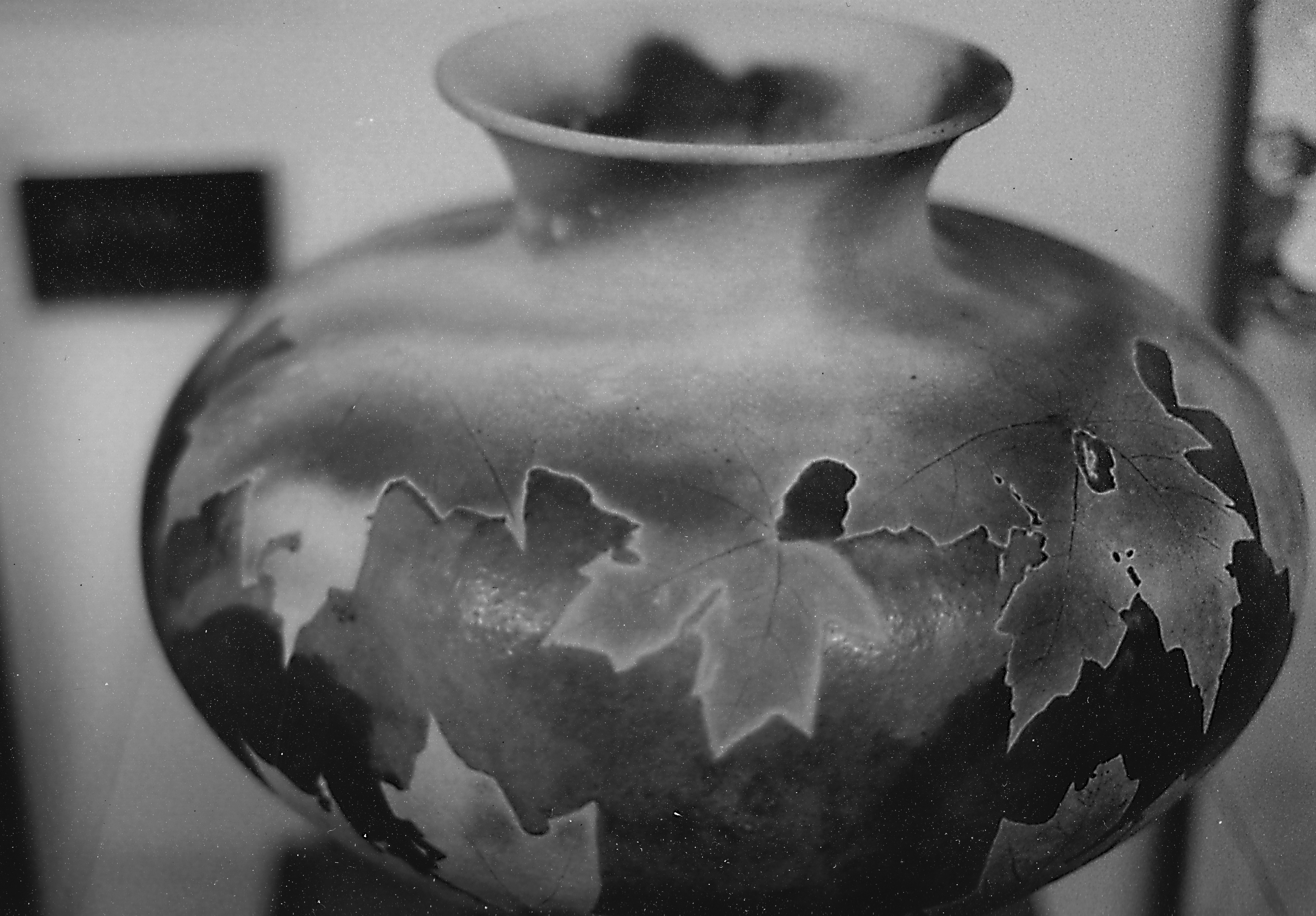 This vase is by a local artist – he fires pieces with leaves pressed into the clay – I have one of his bird feeders and love the look of it.