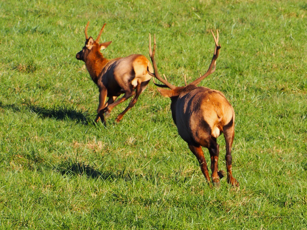 It was the equivalent of overturning all the tables at Denny’s – the other elk weren’t sure if they should react or finish their dinner. None of them decided to join our happy pranksters, but none of them reacted negatively either – what a great society!