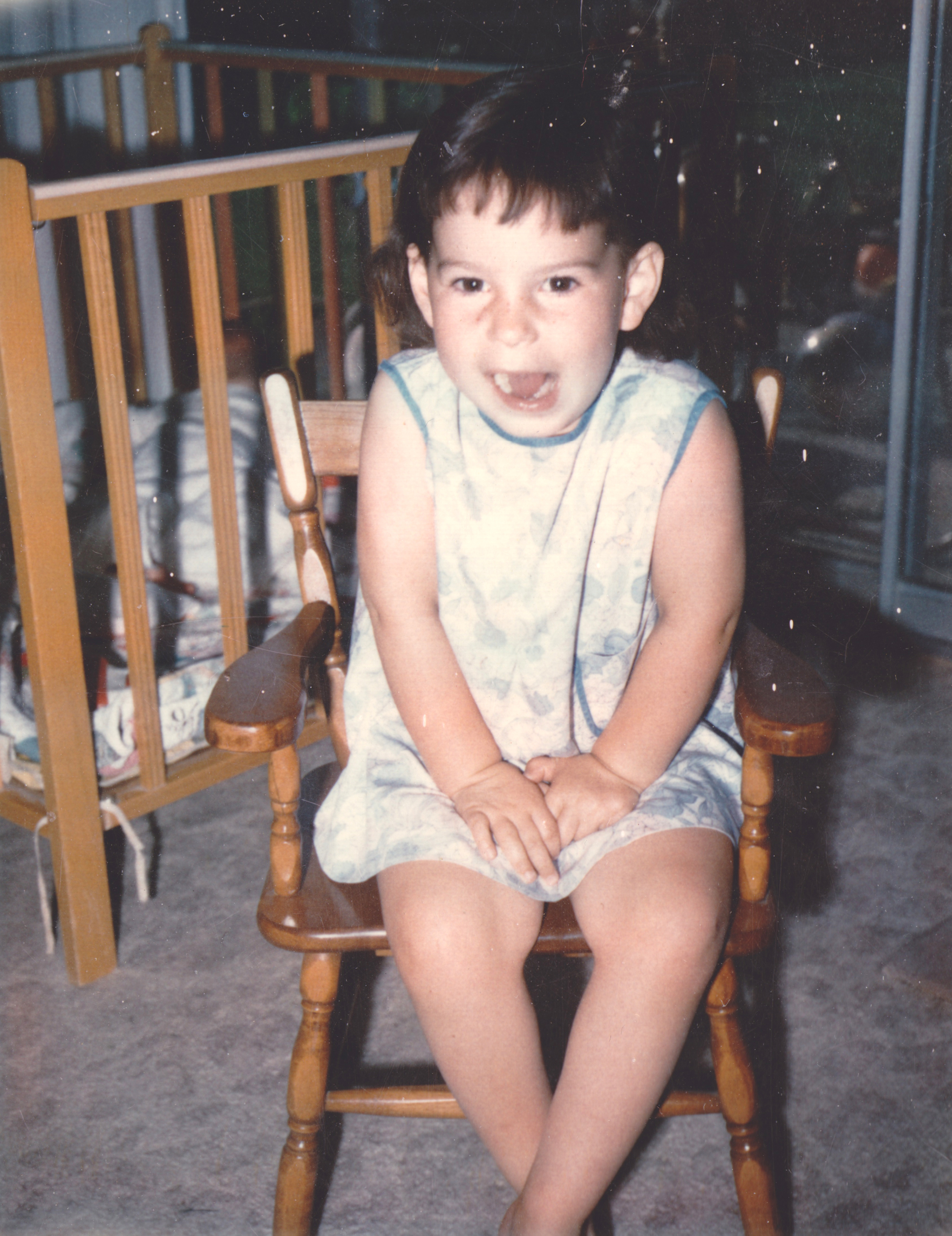 Lorri in a wooden chair Published May 11, 2014 at 2100 × 2727 in Lorri in a wooden chair Mom took this shot of me after my new brother Max came home from the hospital, I think he is sleeping behind me while I make faces for the camera. Mom never let me feel like I was less important because there was a new baby.