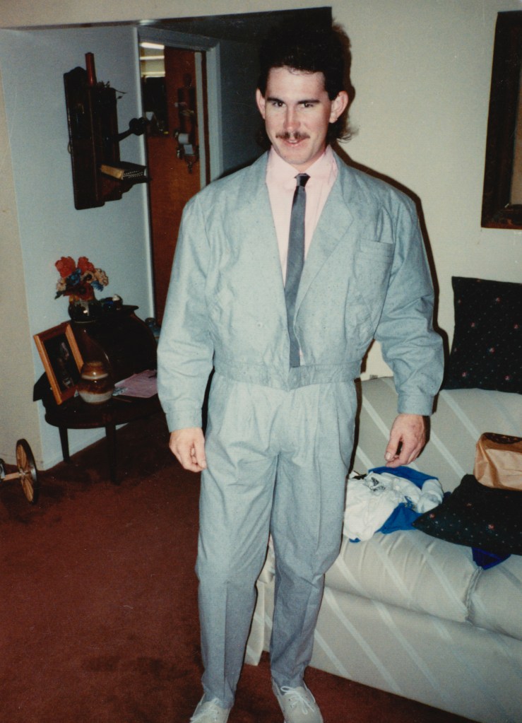 Ron in the 80’s Published May 11, 2014 at 2100 × 2908 in Ron in the 80’s Ron was the one who loved to dress up, and mom always supported his love of style, but I think she may also have had blackmail in mind with this shot.