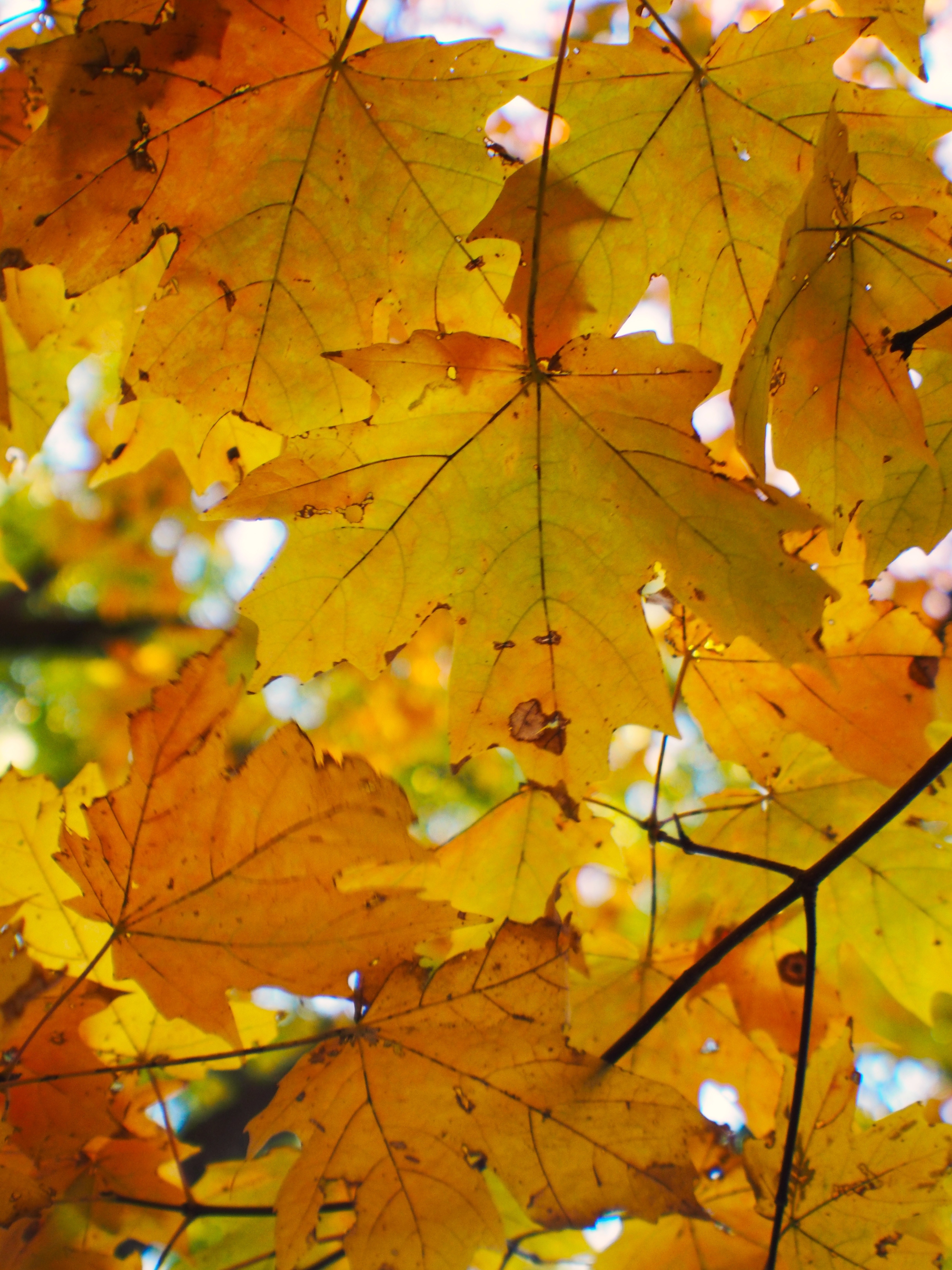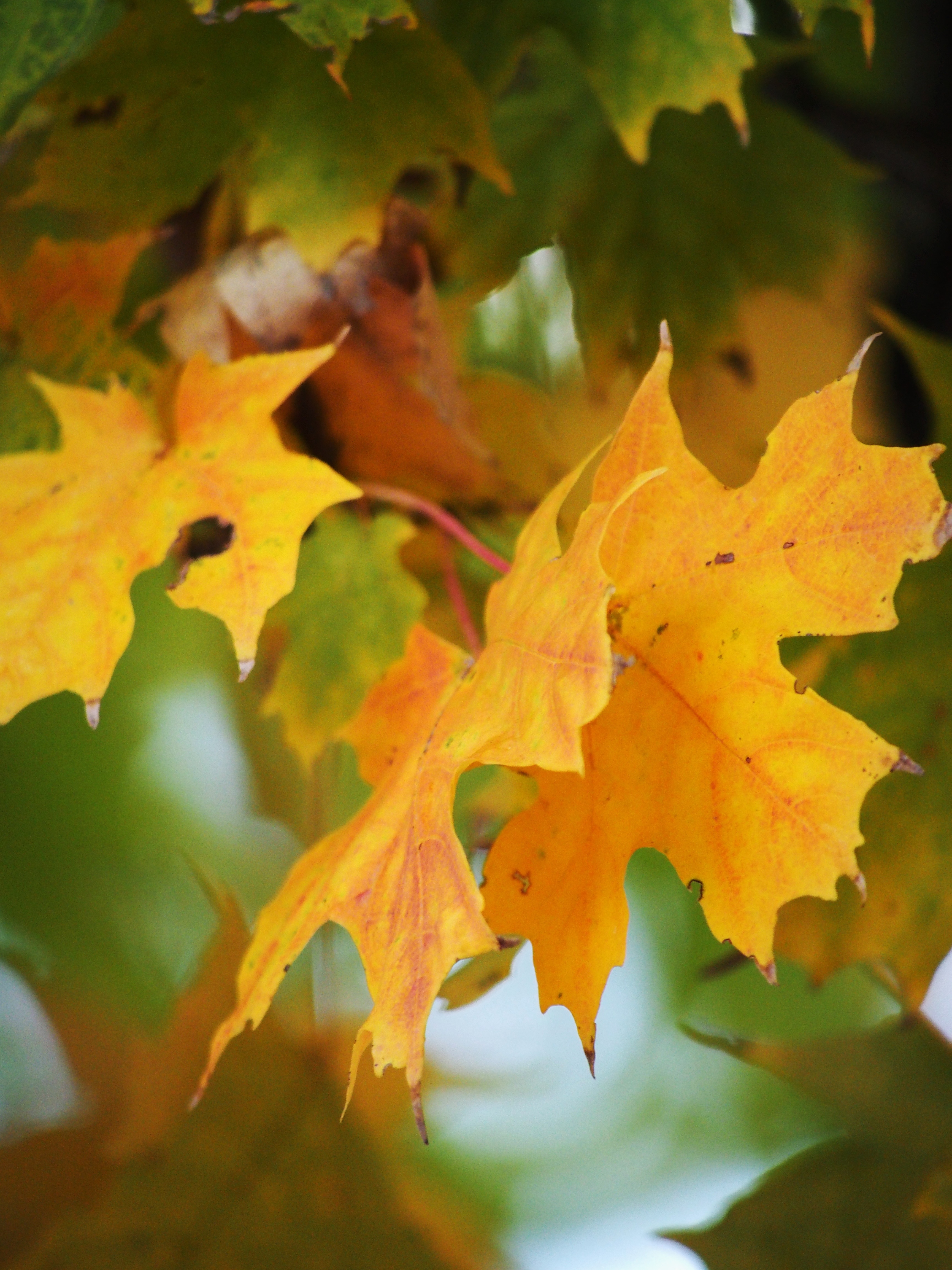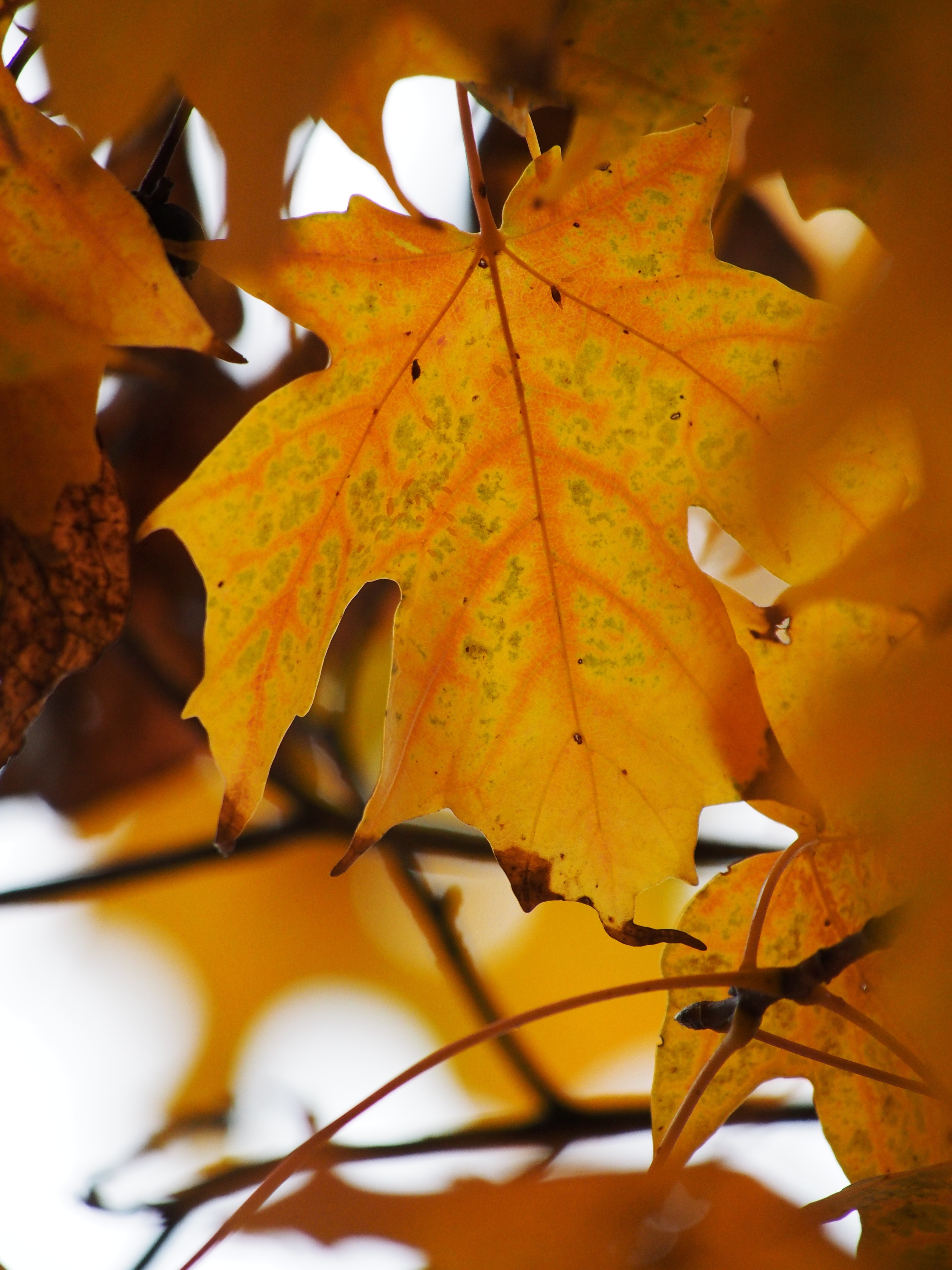 Some maples hung on in spite of the recent wind and rains, sometimes the sky was visible right through them.