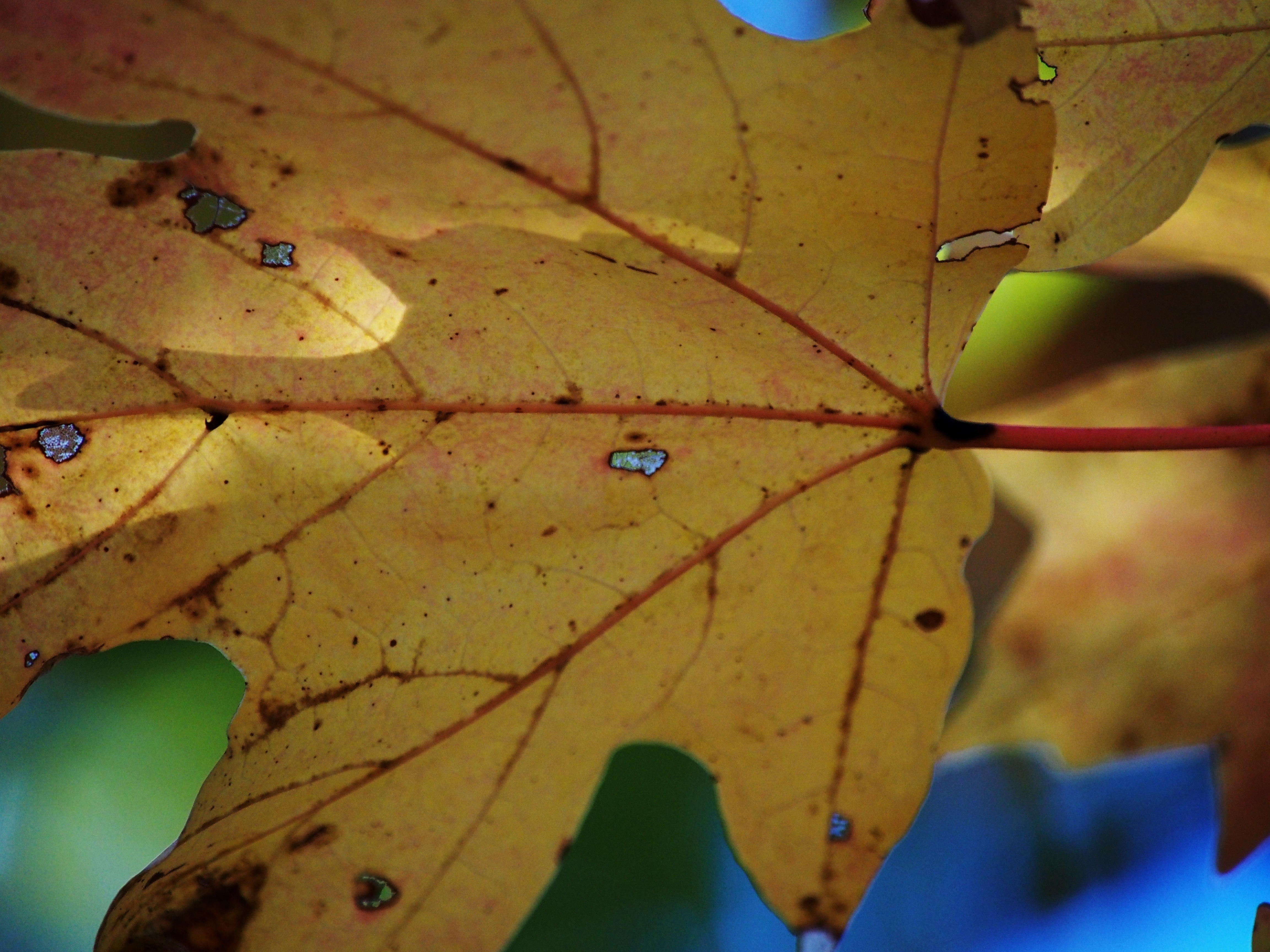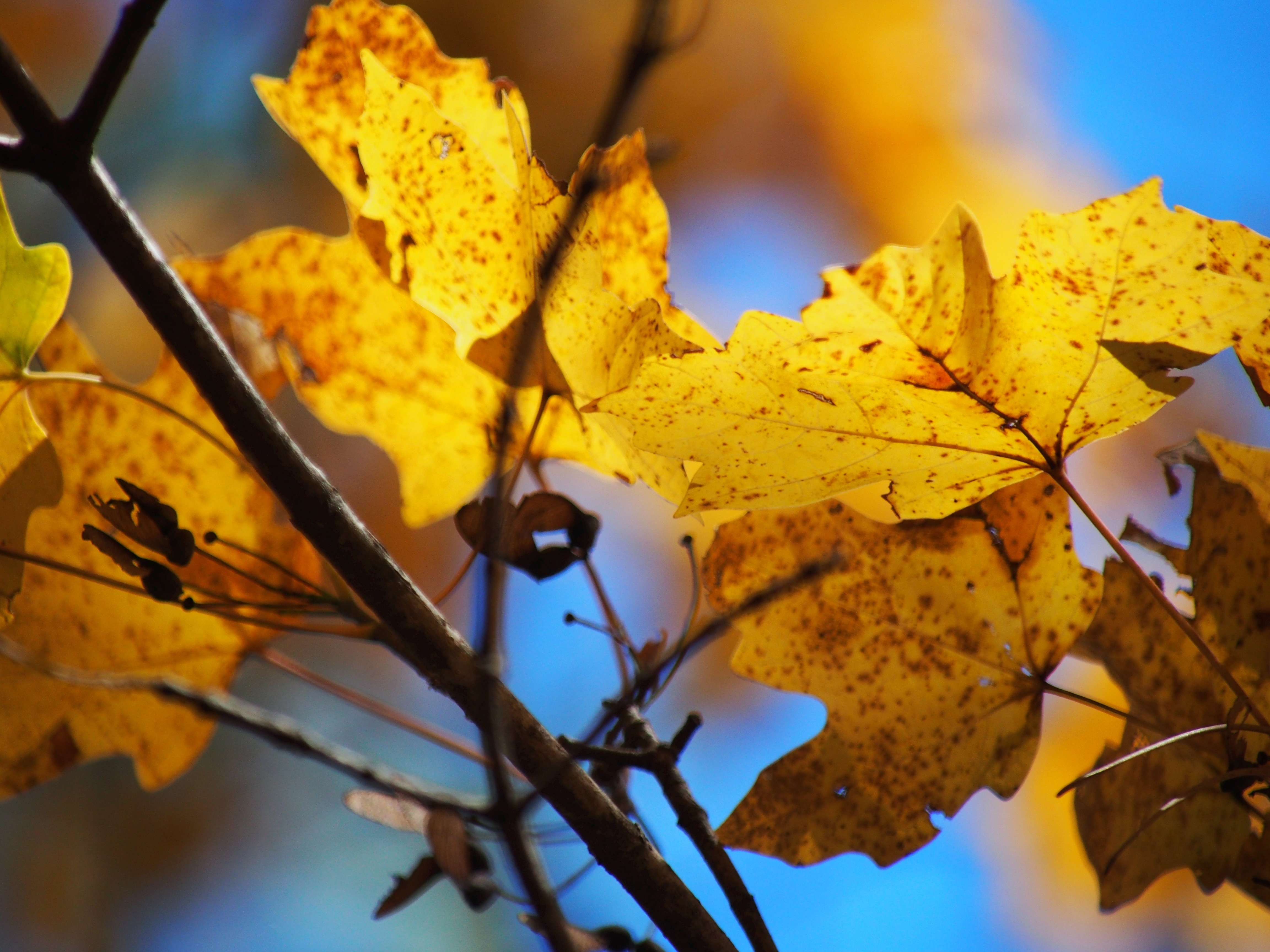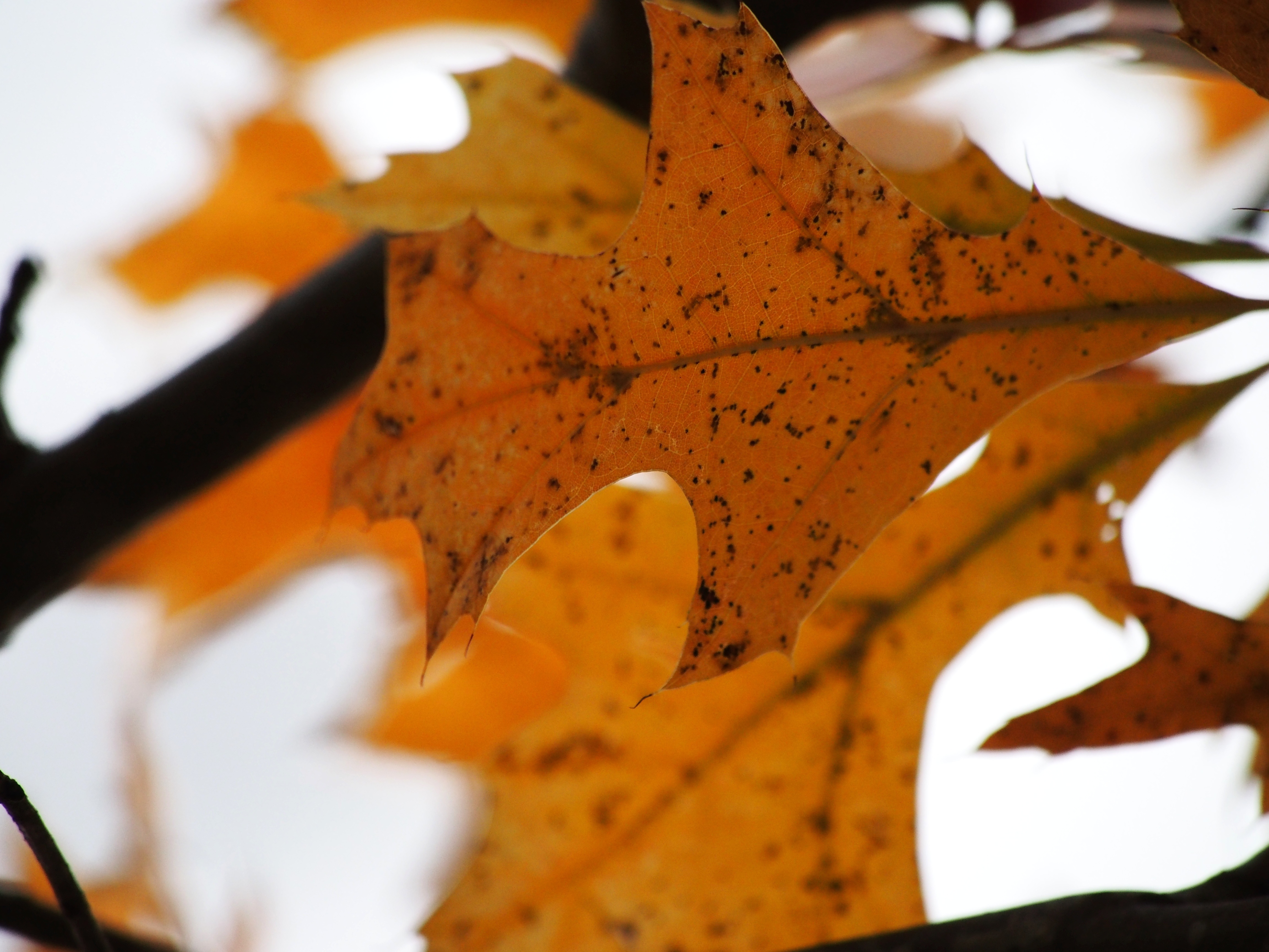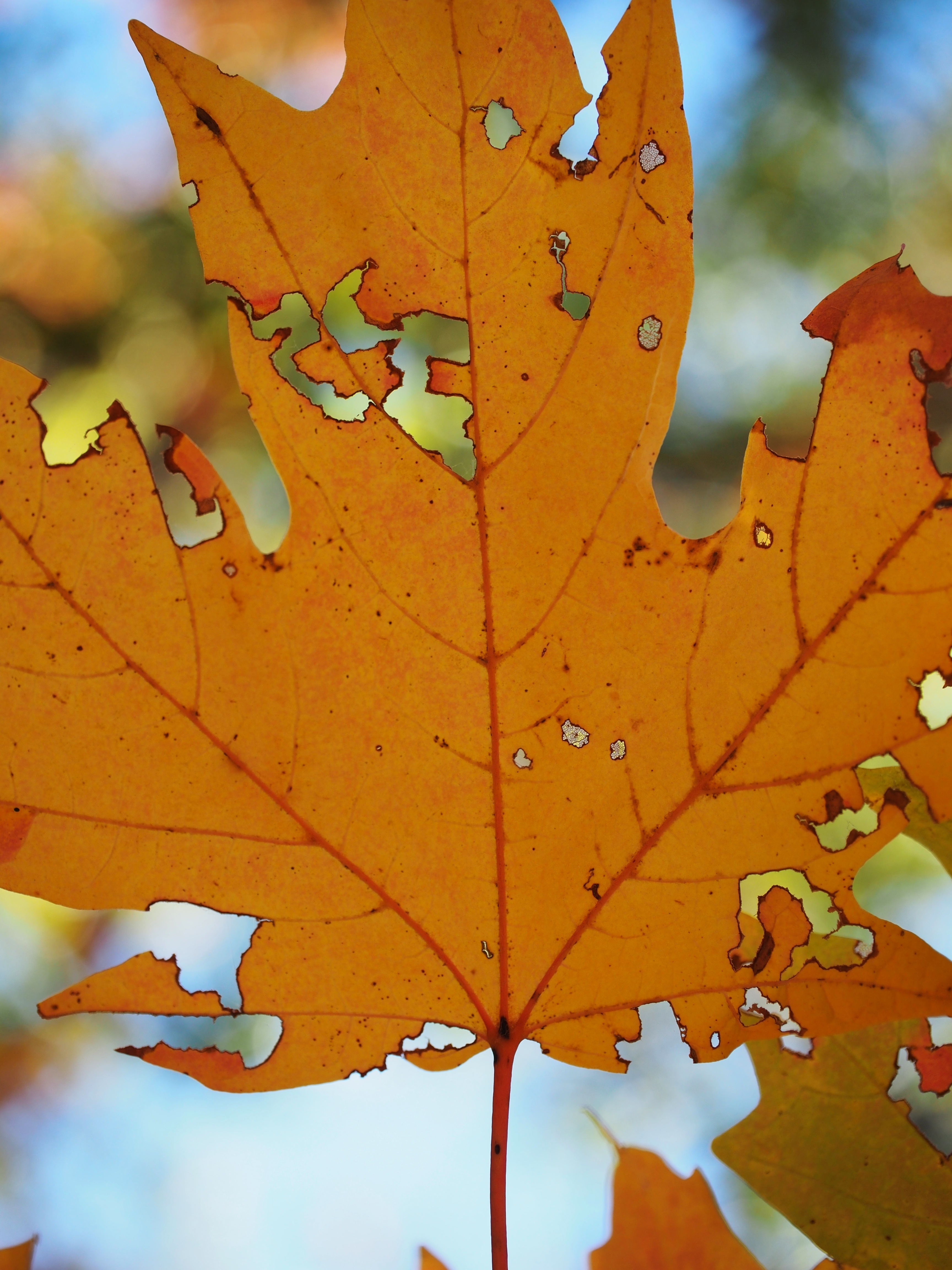 Some maples hung on in spite of the recent wind and rains, sometimes the sky was visible right through them.
