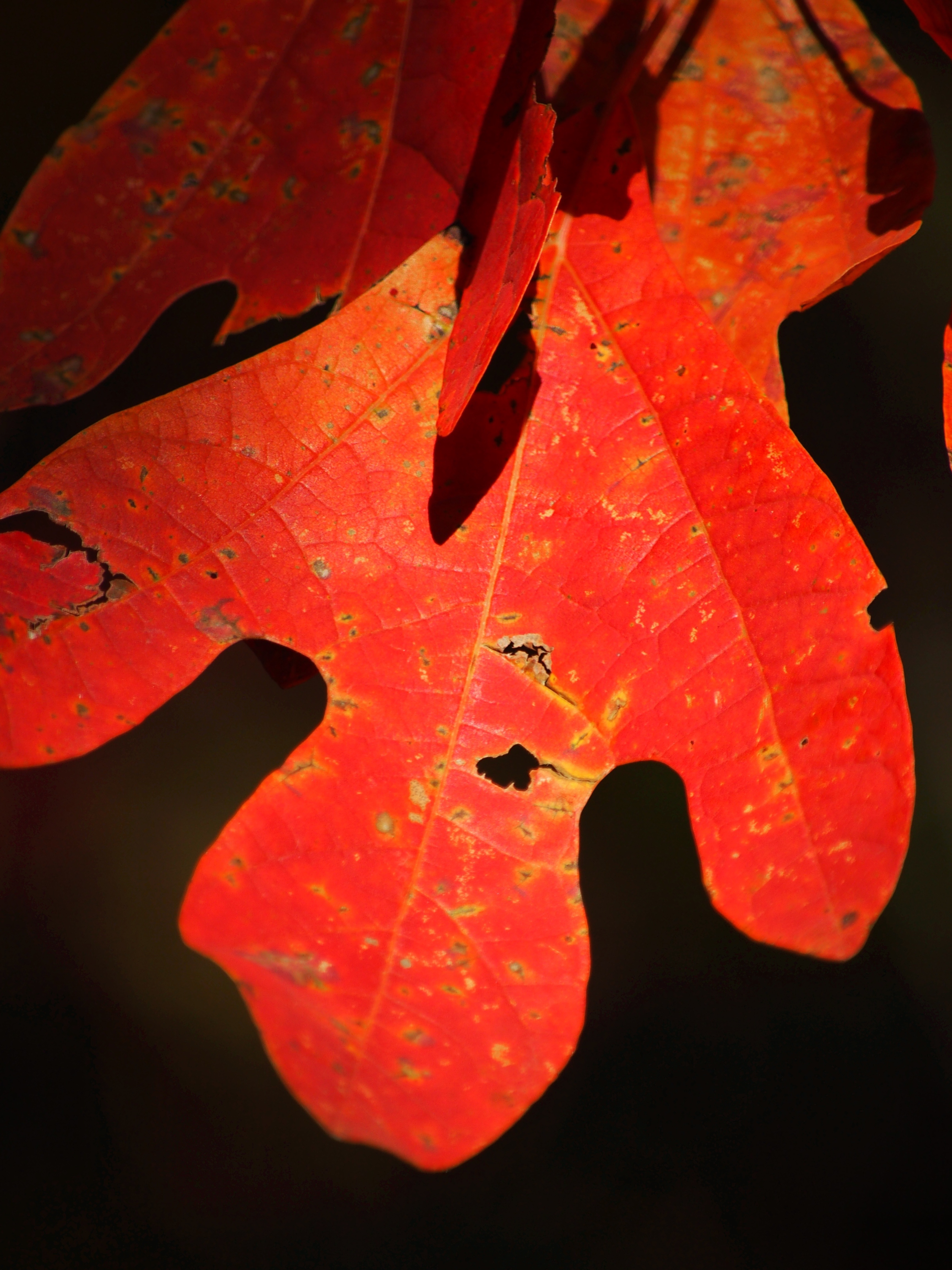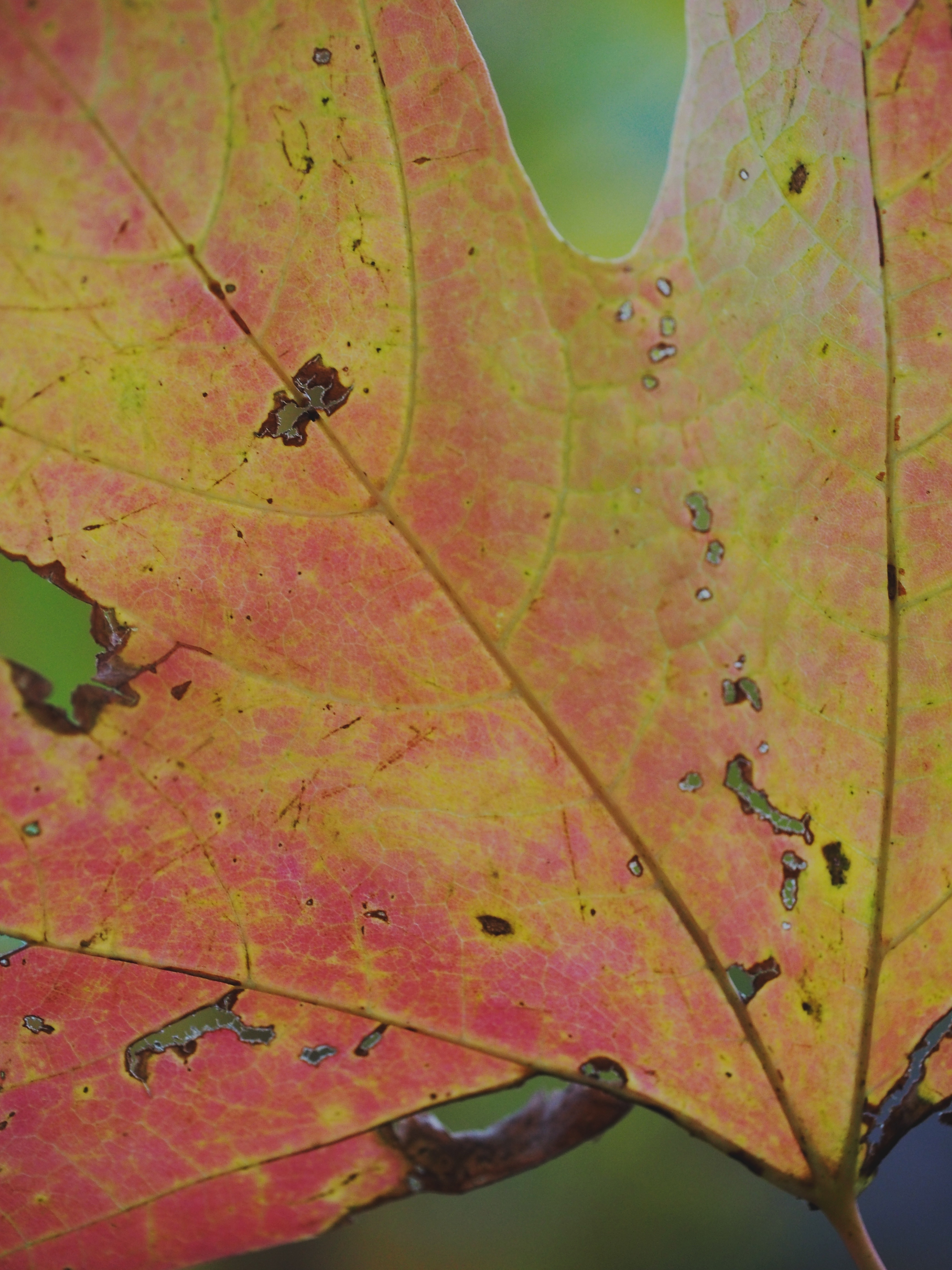 One of my favorite things to do in the fall is to just shoot leaves without any particular thought – I let myself get very right-brained – I hunt shapes and colors while shooting fast. I let my eye just find things without looking for them. It’s very different from shooting wildlife, it’s more organic – it’s more satisfying. I can get lost shooting leaves…