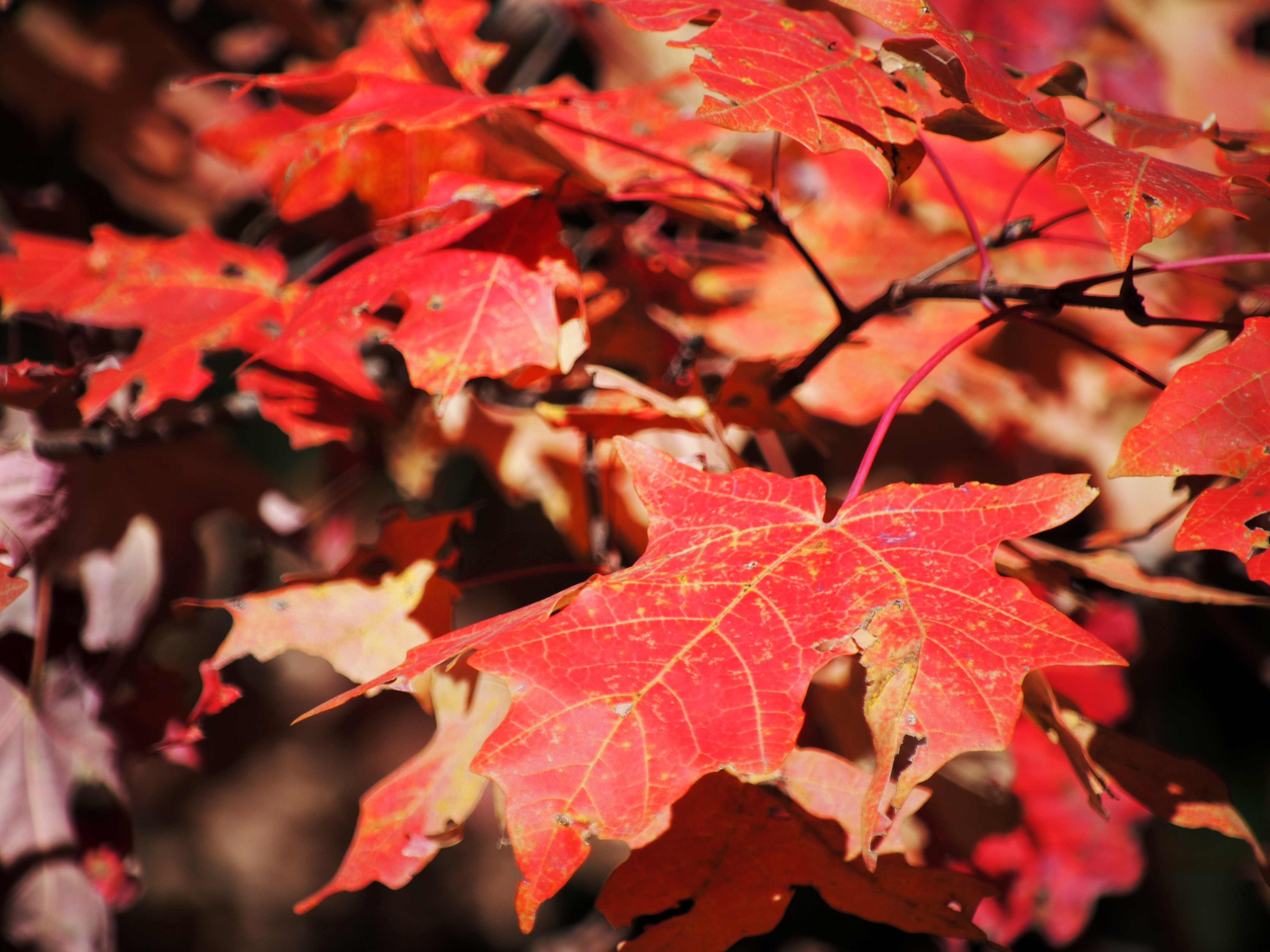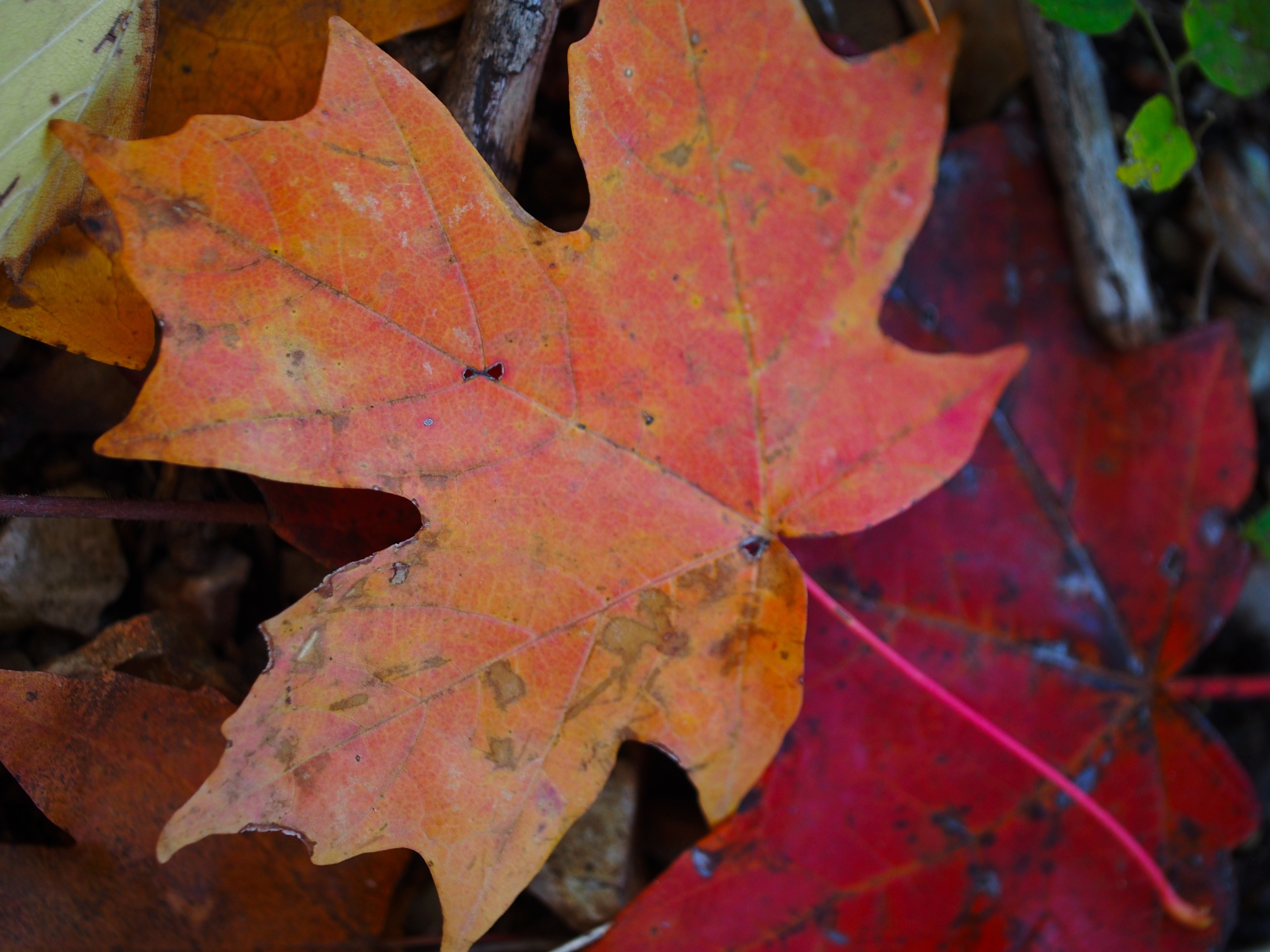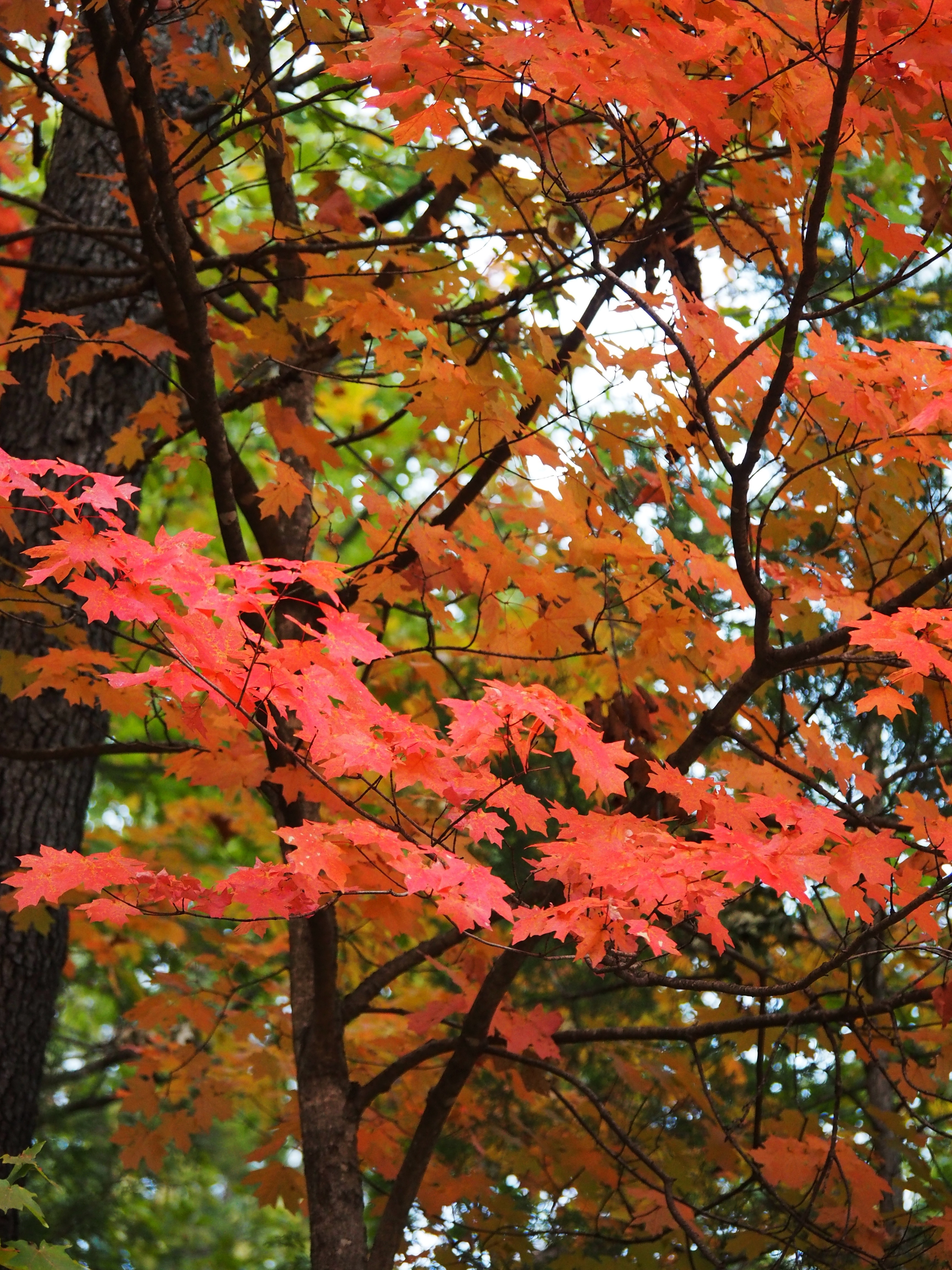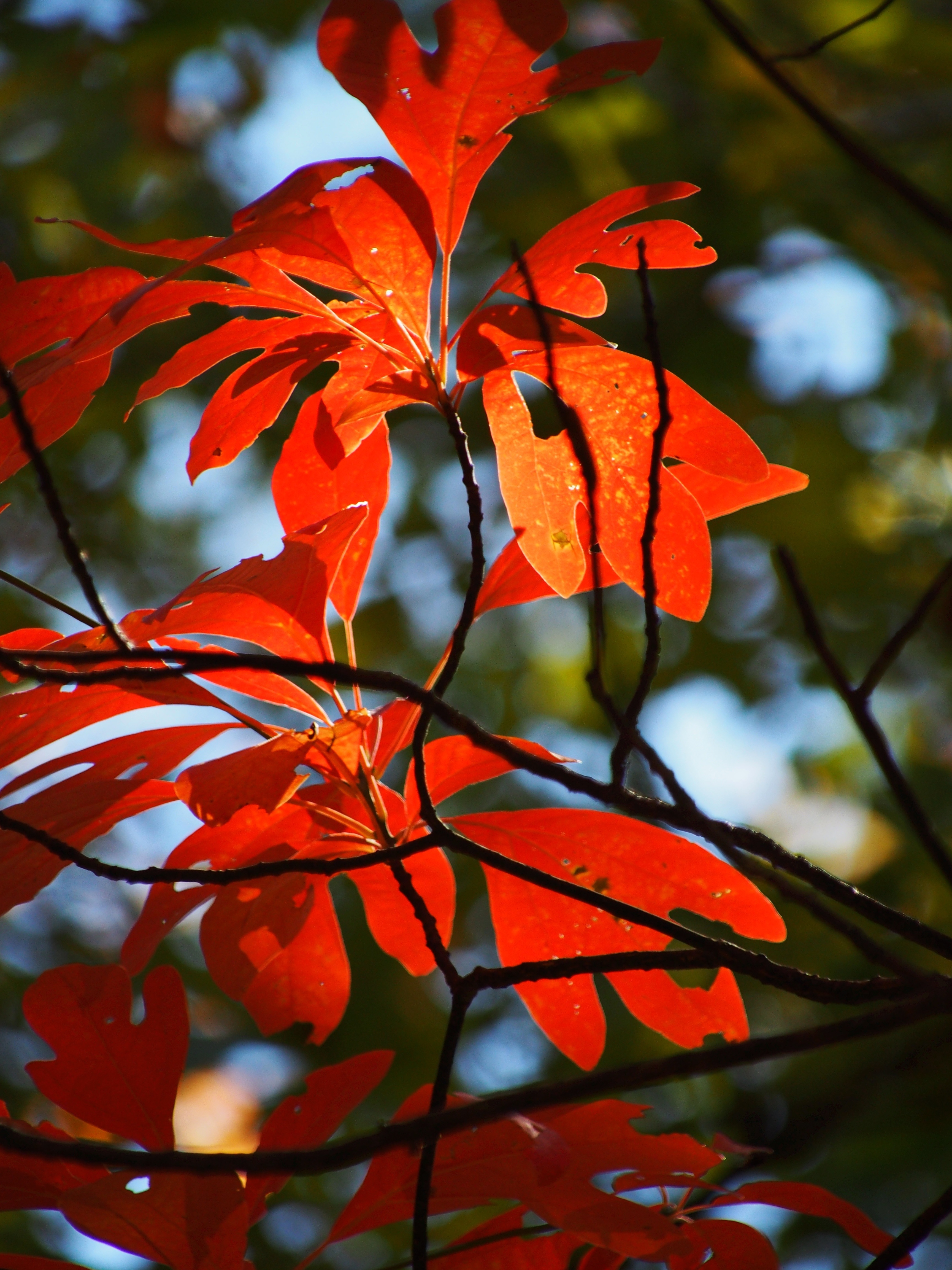 The maples and sassafras go through an orange stage on the way to red, but orange looks best on them.