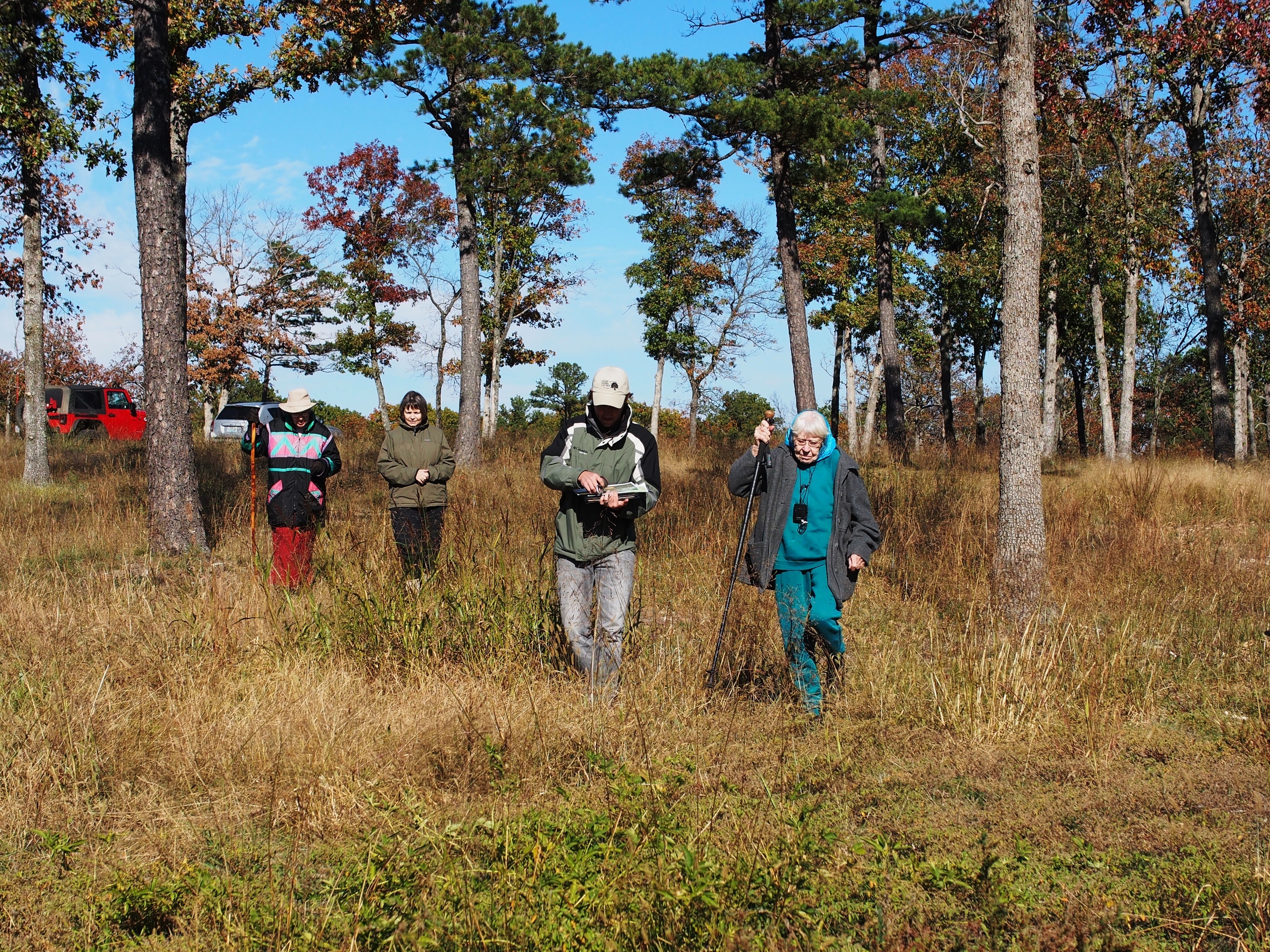 Here we are walking one of the lines. This was a really uneven area and Mary Jane reluctantly accepted some help as she walked the side of that 40.