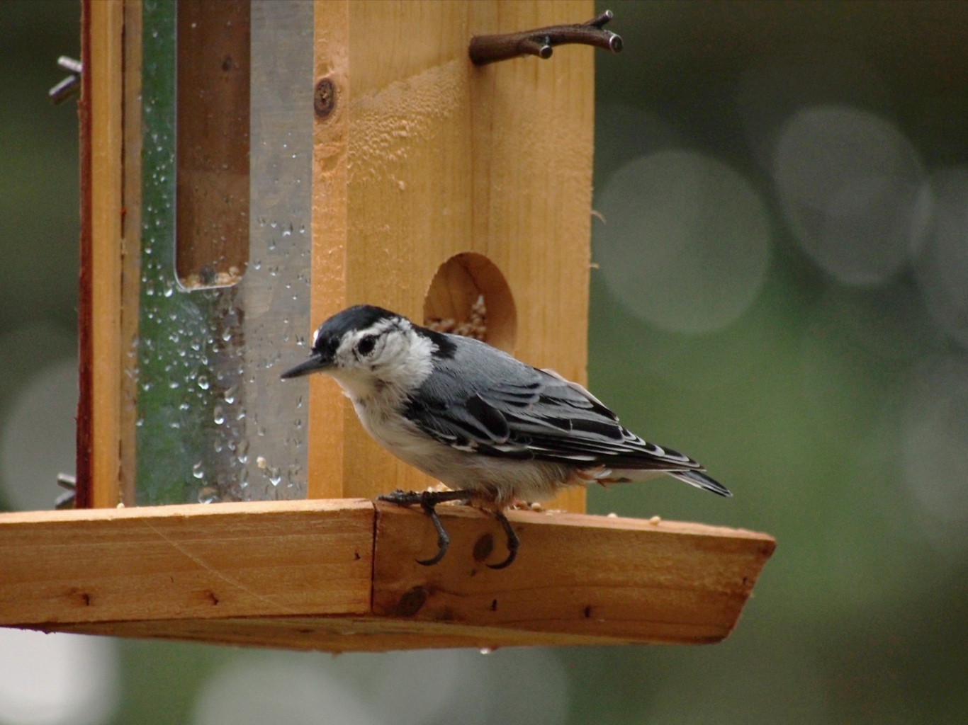 This guy is tougher to catch. He darts around a lot. I thought he was a tall chickadee at first, he tends to crawl across vertical surfaces instead of flying and he likes to walk upside down.