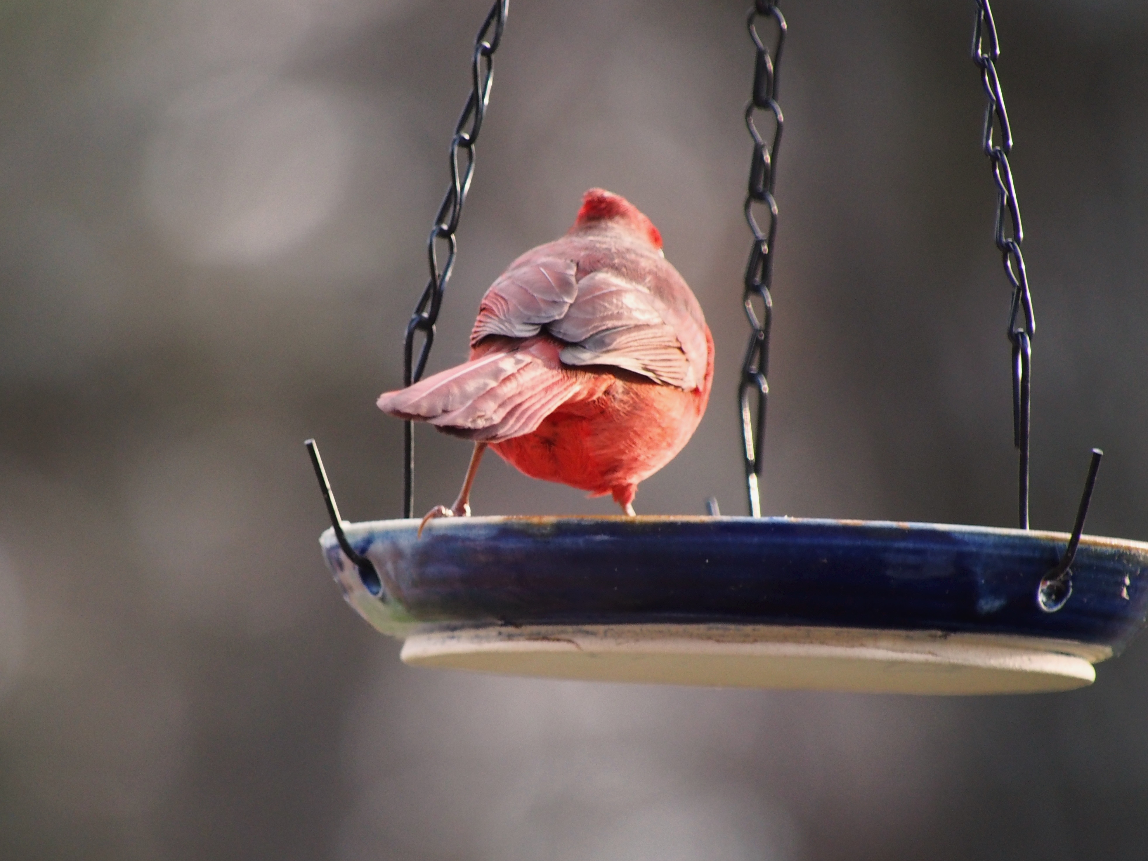 I’ve decided the cardinals can just stay in the driveway. If my buffet is not up to their high standards I’m happy to entertain the diners who stop by every evening. I keep the water fresh and the peanuts are outstanding!