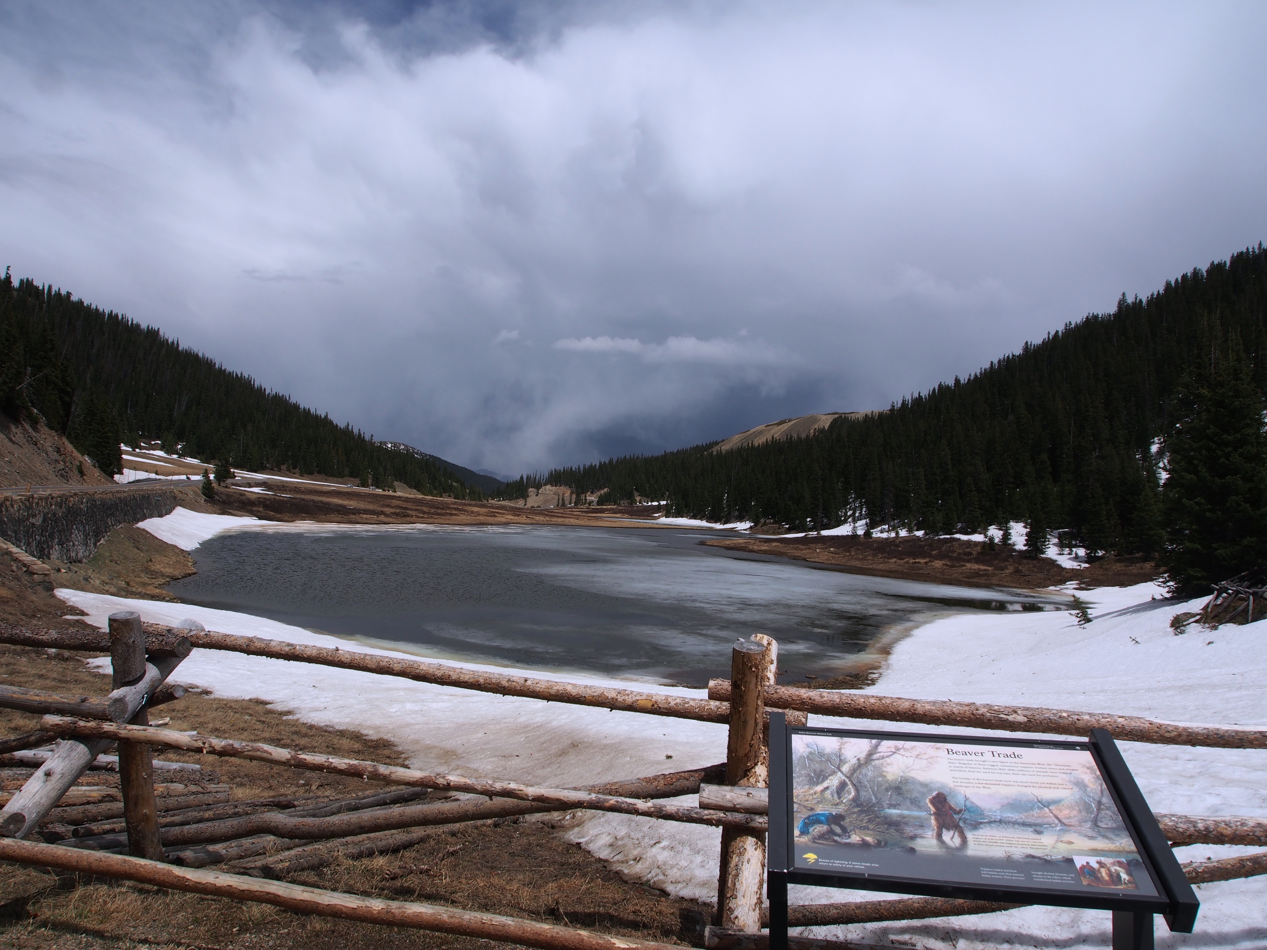 A frozen lake thaws at the Divide.