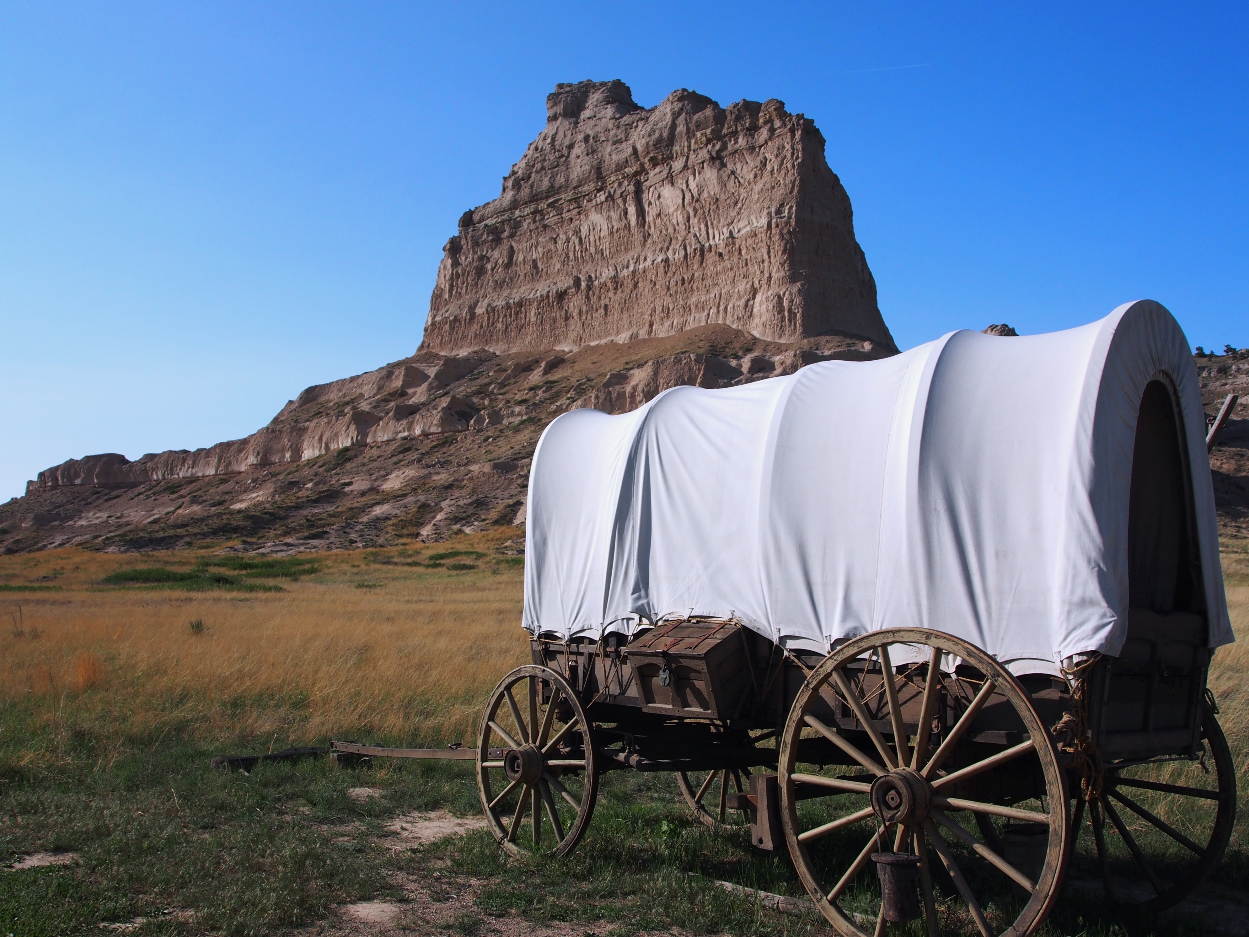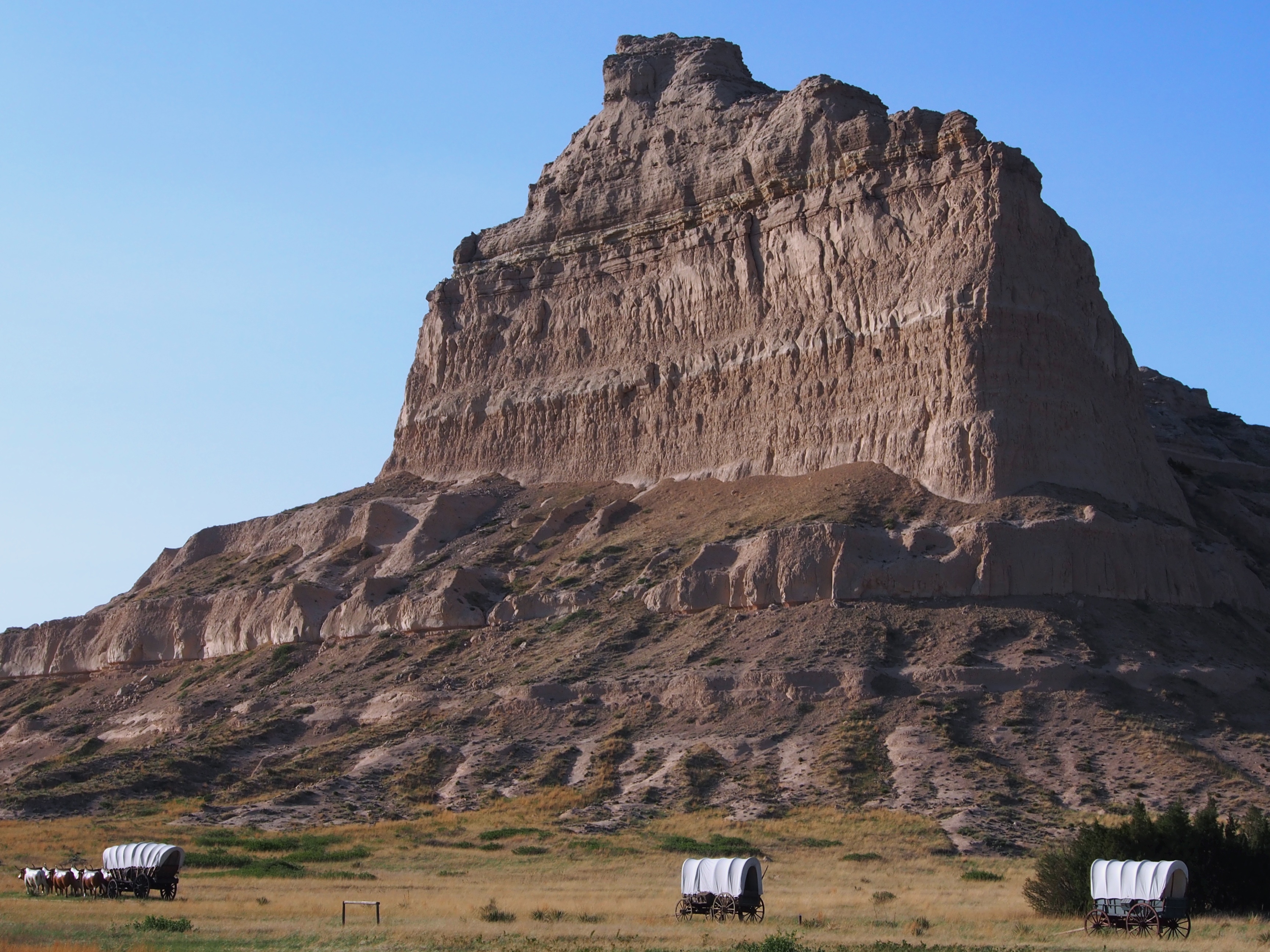 The Park has conveniently placed these 3 styles of covered wagons in front of the monument so each visitor can attempt to recreate the painting in the lobby of the visitors center. Pretty darned authentic if you ignore the plastic oxen.