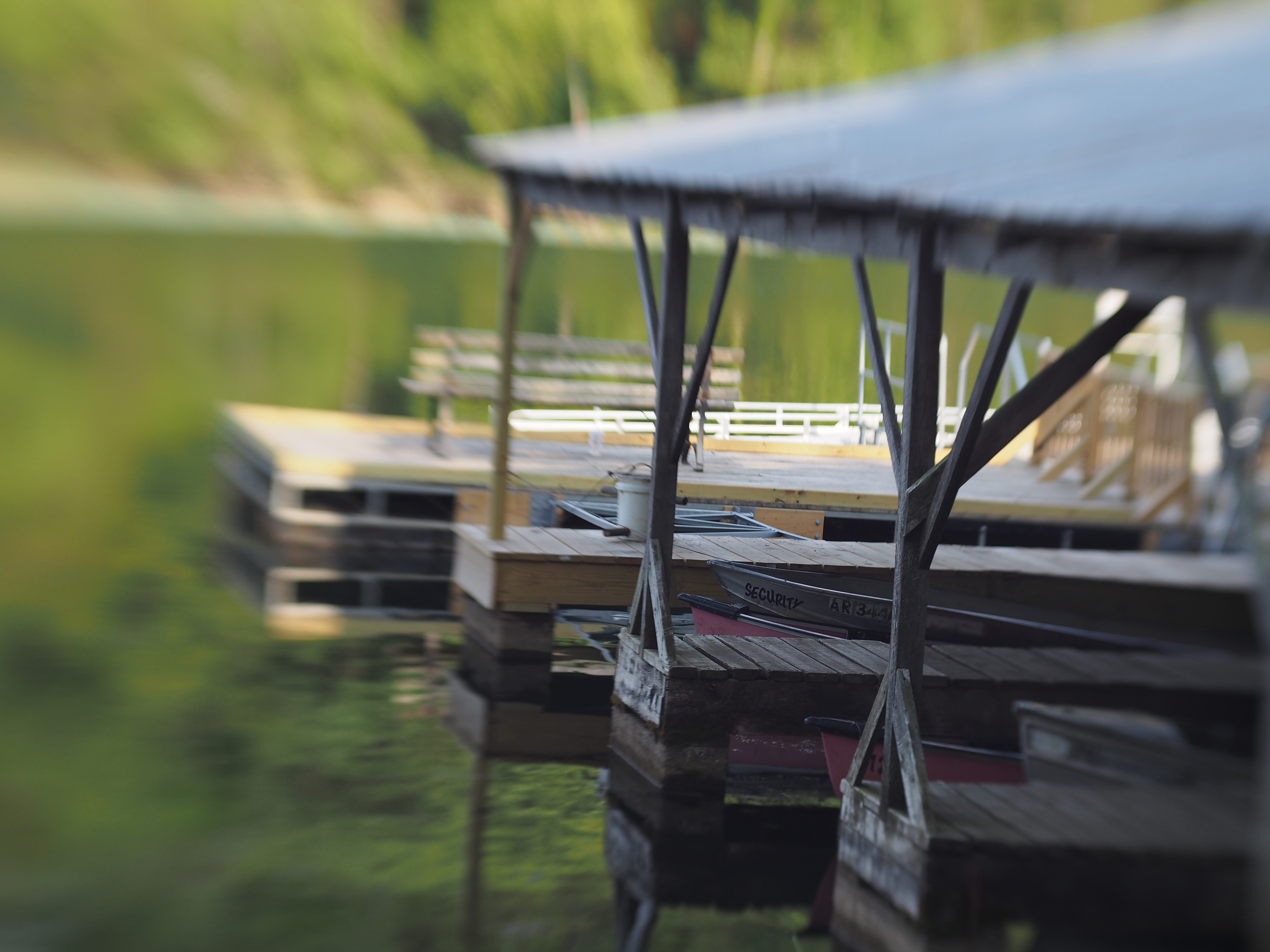 I have written a couple of posts about using my tilt-shift lens set up recently. I wrote about using the technique to give motion and focus to a country road, and used it to take some portraits of an old friend. I thought I would do a post how tilt-shift is typically used. The tilt-shift lens can be angled so that it is not parallel to your camera’s sensor – this gives you a slice of focus and changes the perspective of your shot slightly. It is mostly used to give a feel of miniaturized cityscapes. I don’t live in a city so I went to a scenic overlook in town. It’s a tree covered area that is about midway between the bottom of the hollow that is Main Street and the top of the ridge where the Crescent Hotel sits. Shooting through trees makes it tougher than the shots you typically see – classic tilt-shift is shot from high above and focuses on the tiny details below. It’s all manual – you tilt then focus by hand. You can set the shutter speed and ISO in camera, but the rest is all done by the photographer.