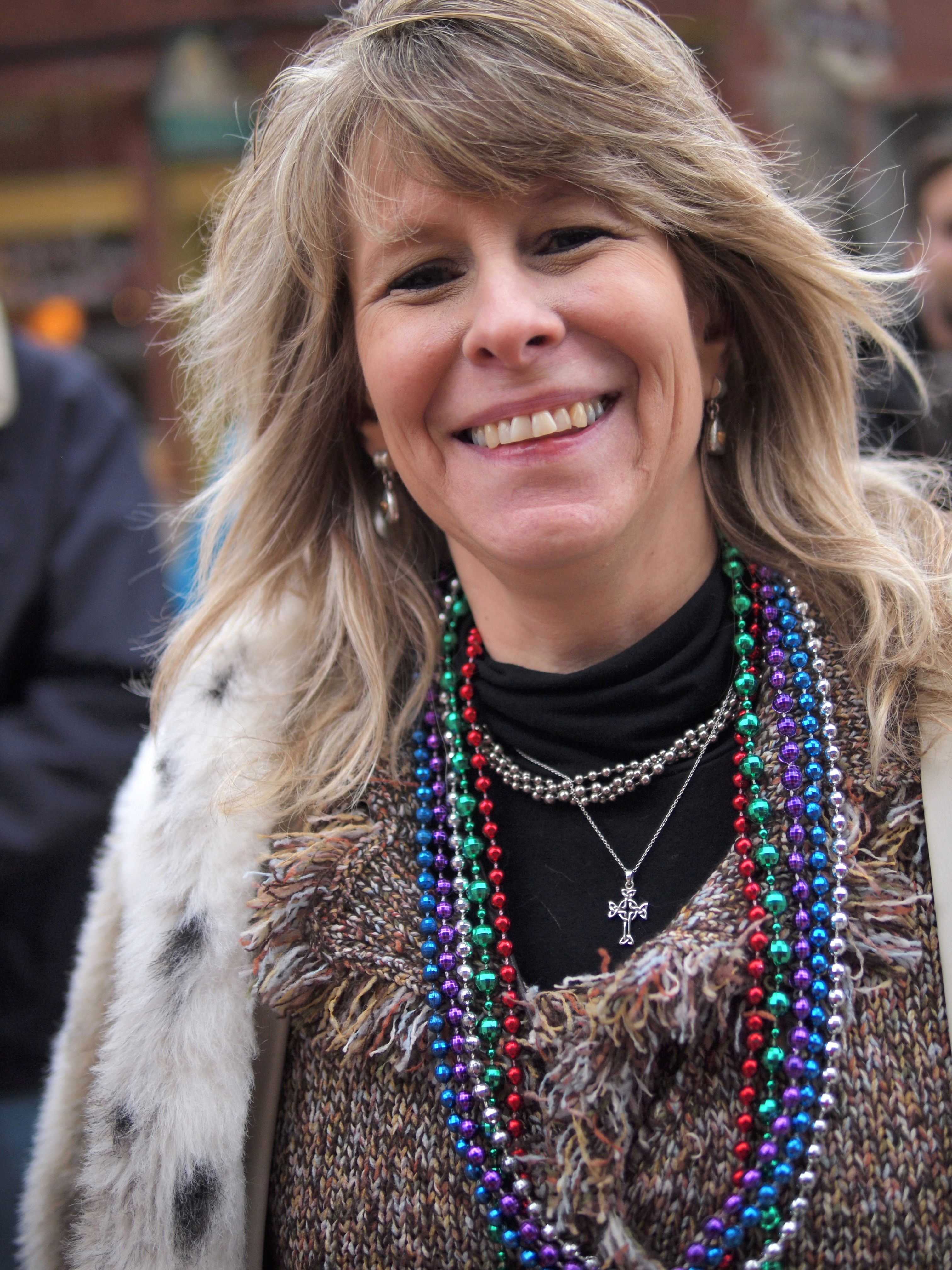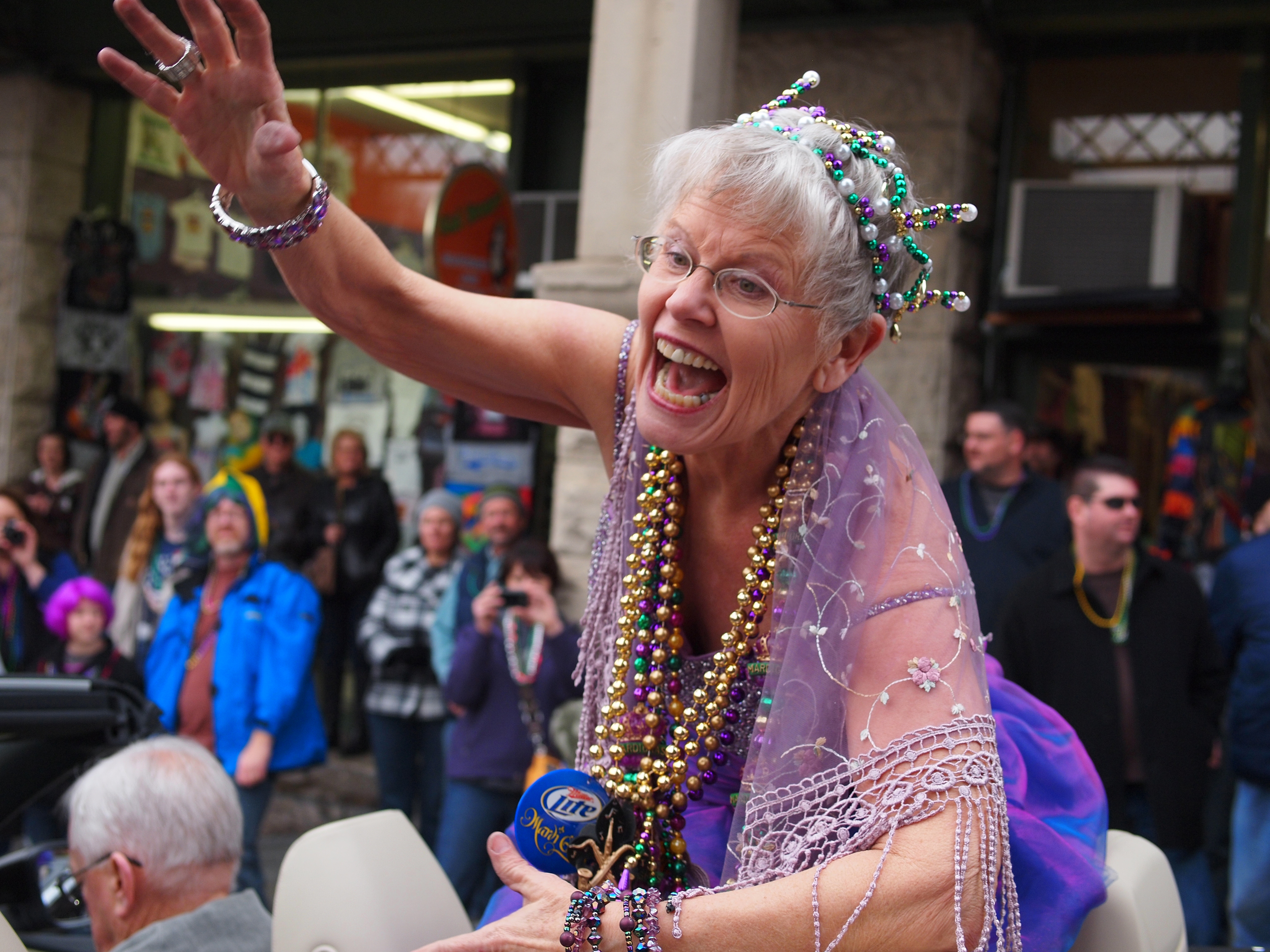 The next three shots are from a series of a woman who was originally from New Orleans – the gusto she had for the enterprise of tossing beads into the crowd were amazing – these were my favorite shots of the day – Duchess Pamela.