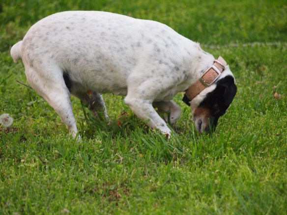 When not on the couch Velcro loves grass. Unfortunately with the drought this year there hasn’t been much – but when the bluegrass is green, she’s got her belly in it.