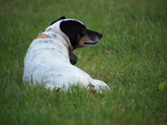 Velcro hunts by stealth. My other terriers bark and squeal at every animal that enters their space. Squirrels, snakes, deer, rabbits. With the exception of snakes, they never catch a thing – I think that’s because snakes are deaf – anyway, Velcro stalks her prey like a cat. She hunkers down in the grass and crawls closer and closer. This tubby, lazy girl has caught a rabbit, 4 squirrels, and a pack rat – and that’s just this month. She is a snake killer too – although a bite from a pygmy rattler nearly did her in about 6 years ago – she’s never been bitten since.
