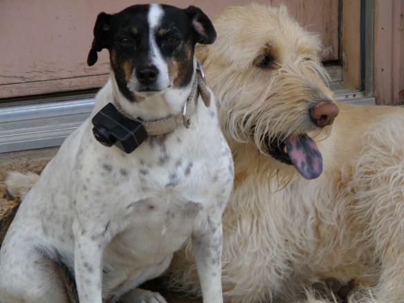 I adopted this dog without ever touching her. What was I thinking? I got her to the house and let her loose in the house and introduced her to the other dogs and I saw the terrier in her come to the forefront – she was playing with my pups who were both about a year old and she was playing with them like a momma dog – lowering her head and extending her legs forward. My male was twirling – he was clearly crazy about his new housemate. My female twirled around me – she decided right from the start to pretend that there was no new dog. She focused totally on me – being the one closest to me at all times. To this day the two sleep next to each other and face in opposite directions. That younger pup has yet to show any affection – she doesn’t hate her, she just prefers to pretend she doesn’t exist.